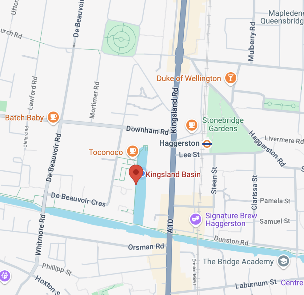 We are based off the Regents Canal in Hackney East London, at the corner with Route cafe. We’re very close to Kingsland Road and can be best visited via the canal towpath.